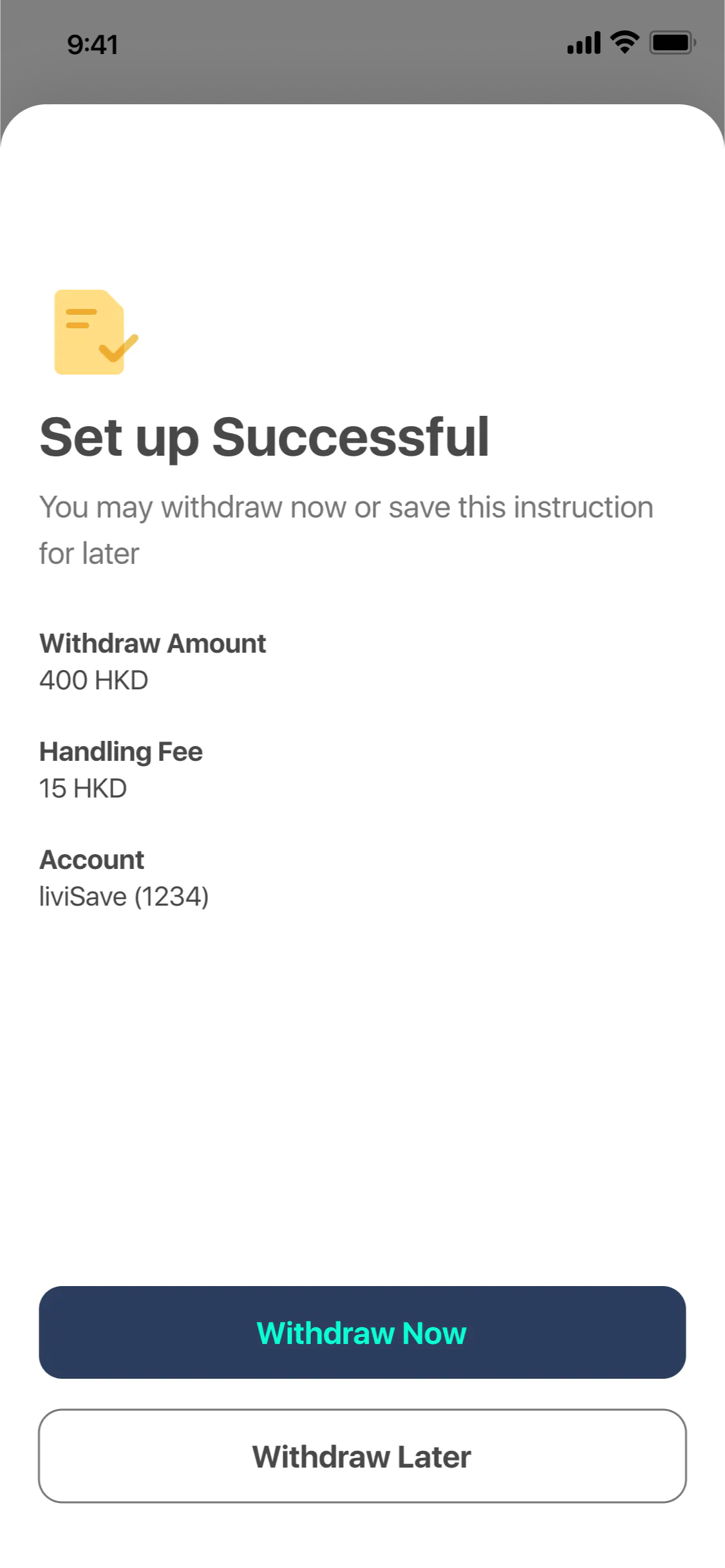 Easily set instructions to withdraw now or anytime within 60 minutes.