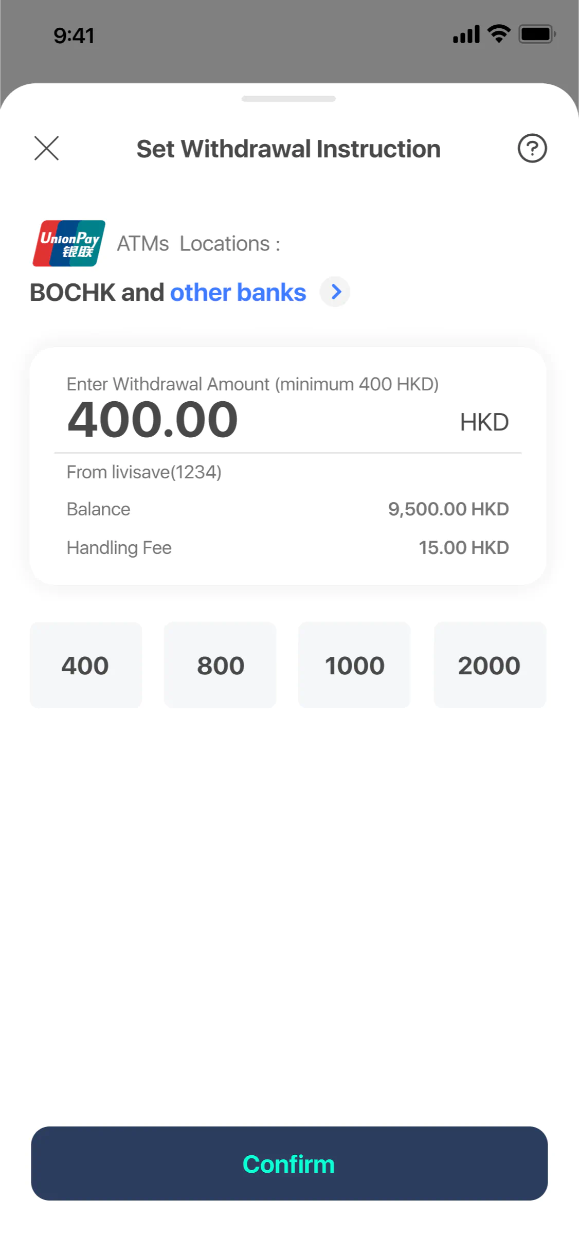 Confirm withdrawal amount