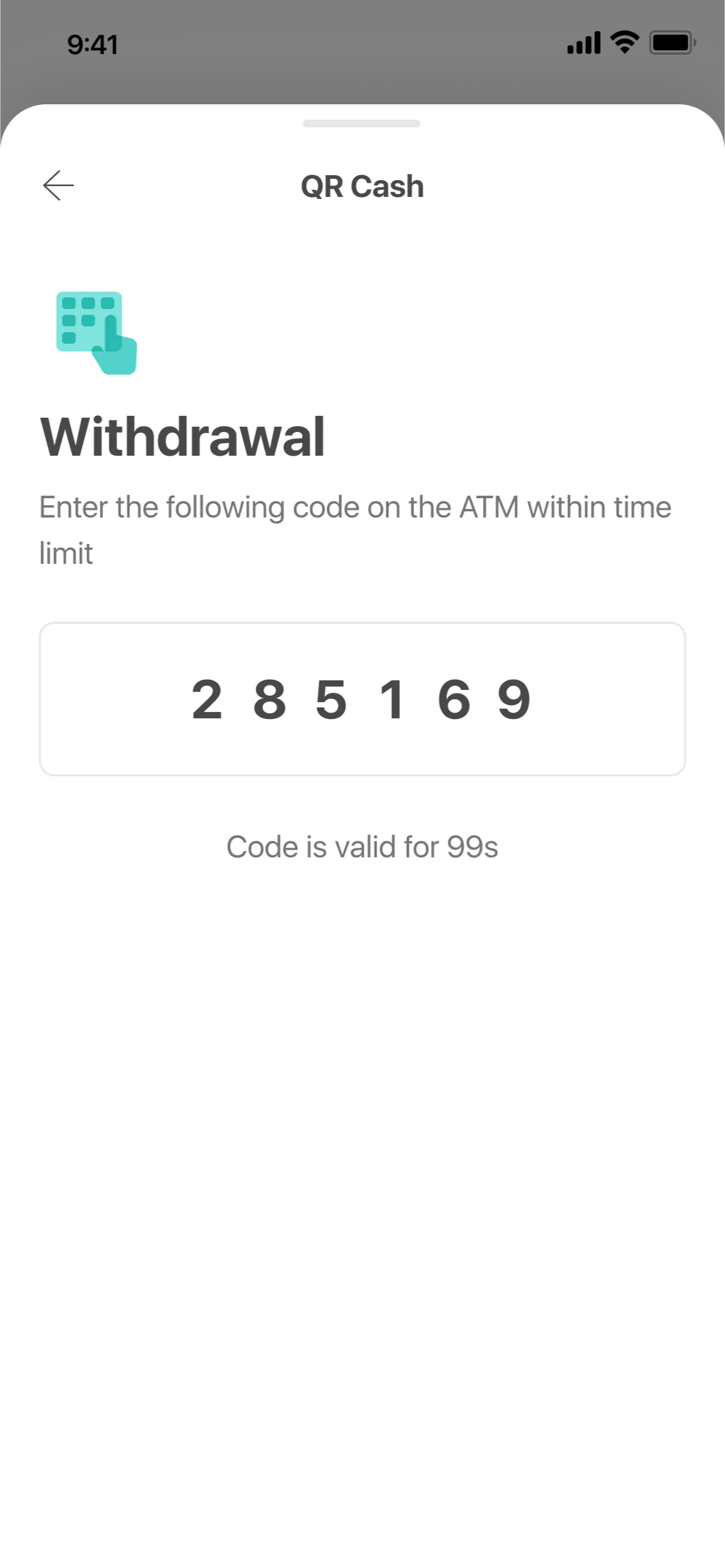 Tap “Withdraw Later” to save your instruction for 60 minutes. Tap “QR Cash” again to retrieve instruction